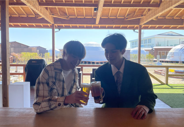 バーカウンターで一杯!生ビール、ハイボール、レモンサワーが飲み放題!