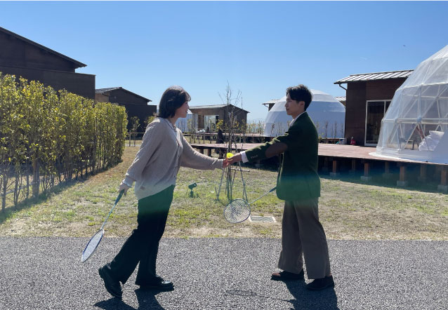 恋人と遊具で遊ぶ!バドミントン、シャボン玉銃、セグウェイなど遊べるアイテムがたくさん!