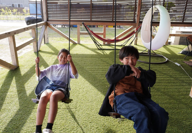 アスレチックで身体を動かす!ブランコ、セグウェイ、キャスターボードなど身体を動かせるアイテムがたくさん!