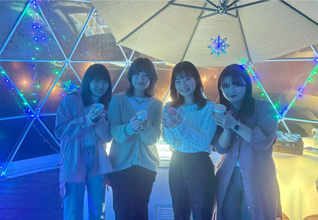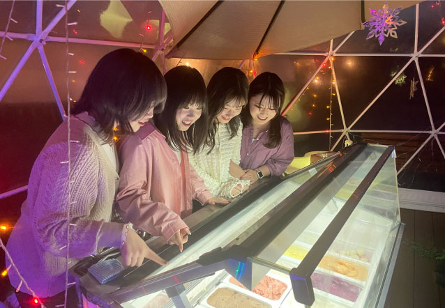 女子会夜のイルミネーションライトアップされたセンターハウスが超絶映える!